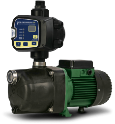 A stainless steel jet pump with an internal venturi, which enables water to be drawn from below ground level (suction capability of up to 8m). Comes pre-wired with Core controller.