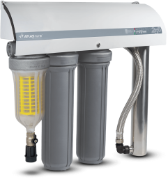 Three-stage water filtration system with UV treatment. SANIC antimicrobial products are protected against bacterial growth by up to 99.99%.